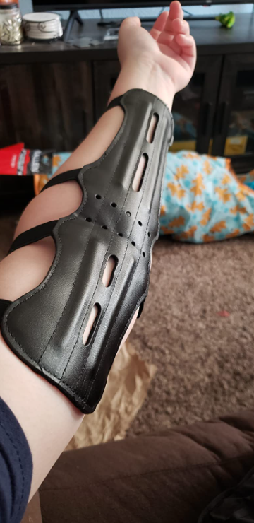 Sản phẩm này có thiết kế thực dụng, nâng cấp với mẫu trước: ôm trọn hết cánh tay và khuỷu tay, có 4 dây đeo có thể dễ dàng siết chặt, có lỗ thông khí giúp tránh bí hơi, gây nóng, khó chịu. Thiết kế đối xứng nên đều có thể dùng cho người thuận tay trái, tay phải. Dùng cho cung một dây và cả cung trợ lực (cung 3 dây, cung compound)