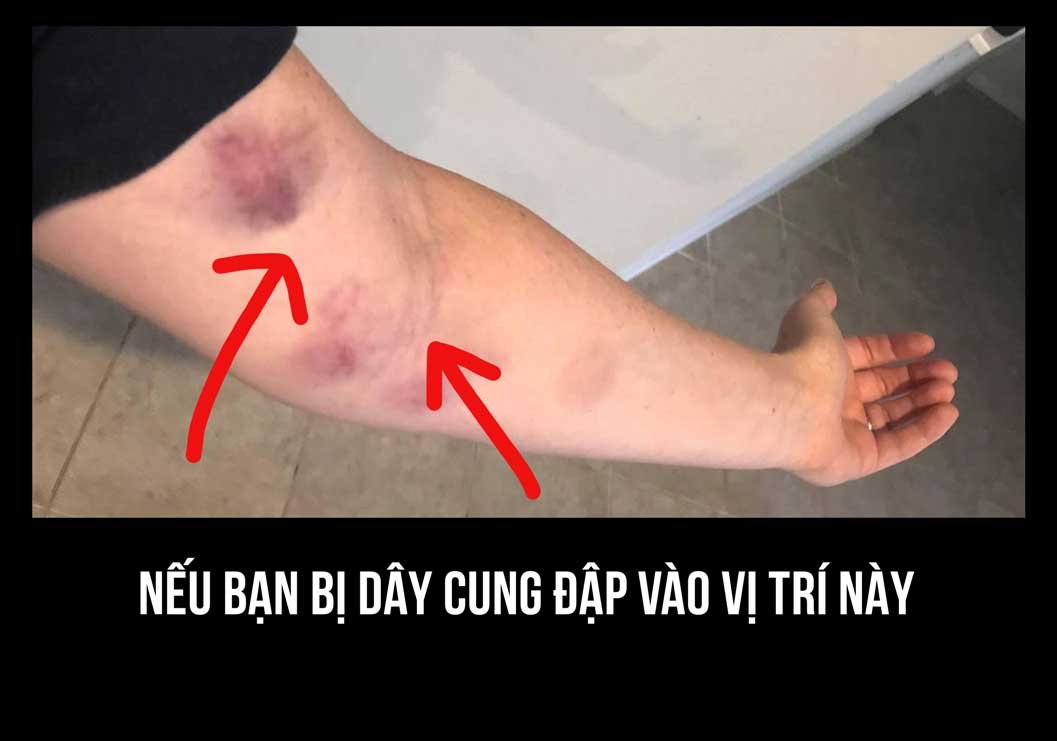 Dù là cung thủ lâu năm hay mới chơi, bạn có thể cần phải trang bị giáp bảo vệ cánh tay (armguard) để bảo vệ chính tay cầm cung của mình. Lực cung rất mạnh, khi người bắn sử dụng kỹ thuật không đúng, chưa xoay cẳng tay đúng, cung chưa chỉnh chuẩn,… thì rất dễ bị đập dây. Đặc biệt với nhưng cung thủ có tay bị cán vá, chưa rành bắn cung bị dây đập vào vị trí khớp khuỷu: