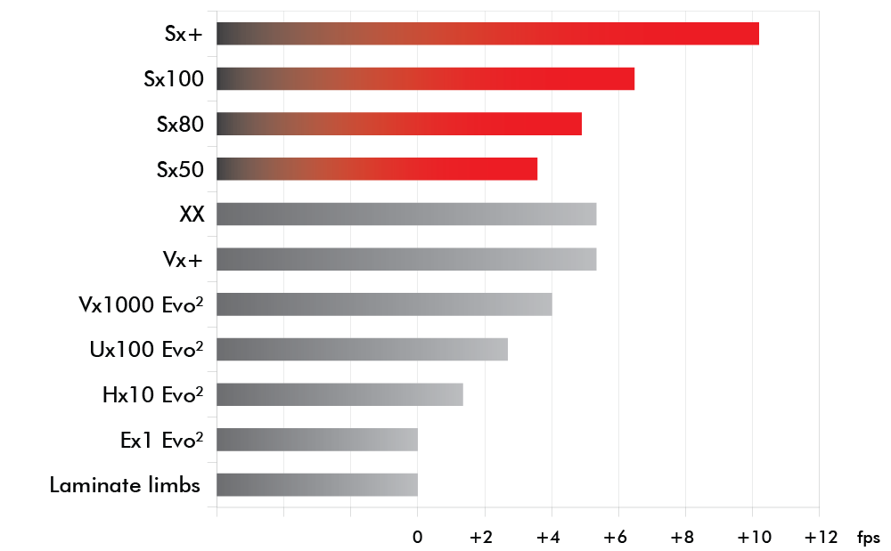 Cánh cungUukha SX50 bắn tên nhanh hơn làm tăng độ chính xác trong điều kiện nhiều gió, quĩ đạo đường bay thấp hơn đồng nghĩa thời gian mũi tên ở trong không khí ít hơn, ít bị gió ảnh hưởng, lợi thước ngắm hơn (chỉnh thước ít hơn) cũng như dễ ước lượng đường bay ở cự ly xa.
